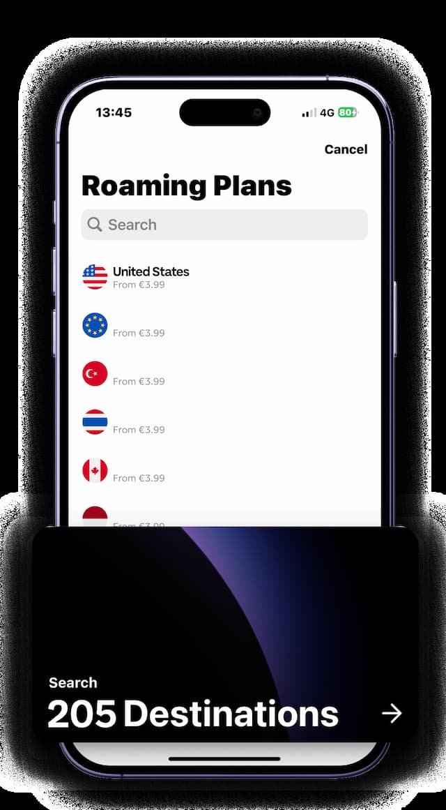 Prepaid plans from €3.99. Activate your eSIM in seconds and roam like you're at home.