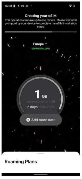Pressing the “INSTALL ESIM” button will begin the process of creating your GoMoWorld eSIM