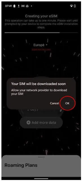 This process can take up to 2 minutes depending on your internet connection. Once your eSIM has been created, you’ll be prompted by your device to complete your GoMoWorld eSIM installation.