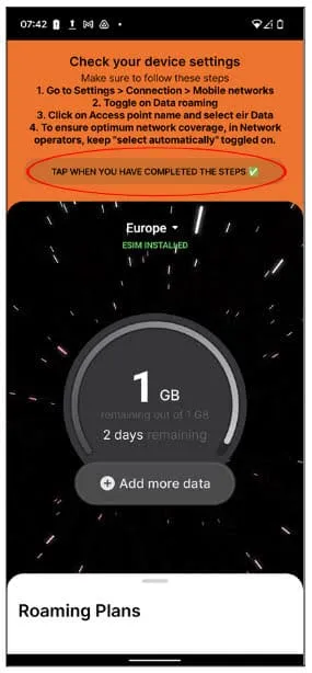 Once the eSIM installation is complete, you will be asked to check your device settings to finish the activation of your eSIM.