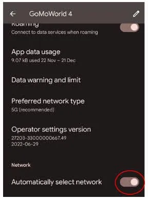 - You will then need to Turn on Automatically select network