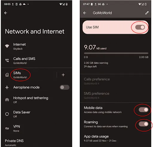 In order to use your GoMoWorld plan on your Google Pixel device, you need to activate Roaming to allow you to connect abroad.