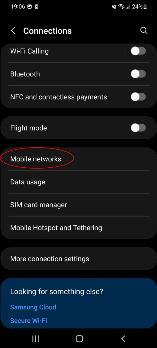 Calls and messages should remain on your physical SIM or on the eSIM corresponding to your main phone number. - Go to Settings > Connections > Mobile networks and toggle on Data Roaming
