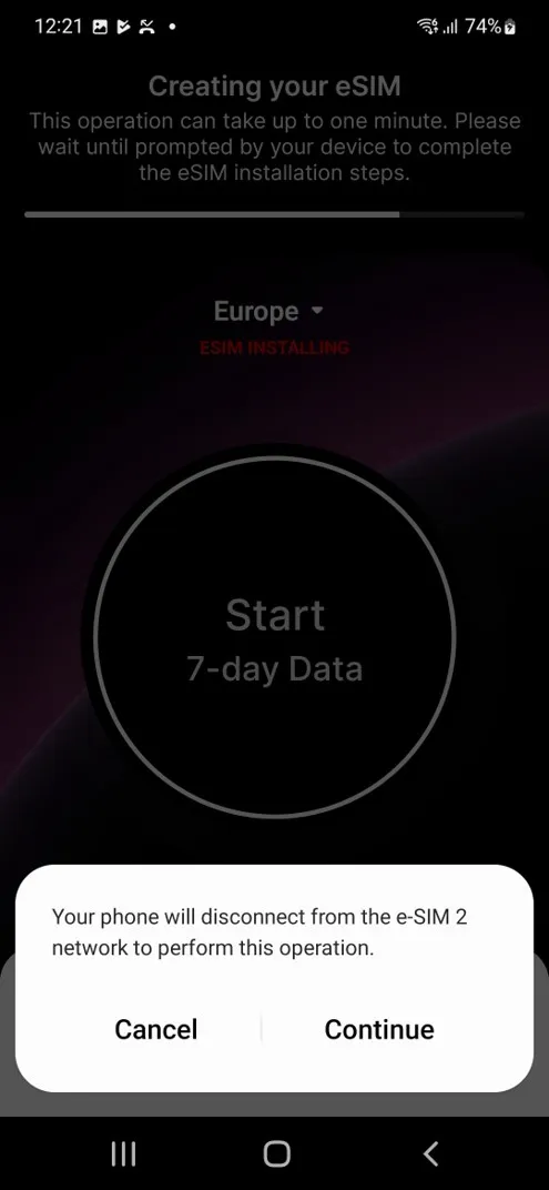 If another eSIM is currently active, your phone may ask you to temporarily disable it to proceed. You can re-enable it later if needed.