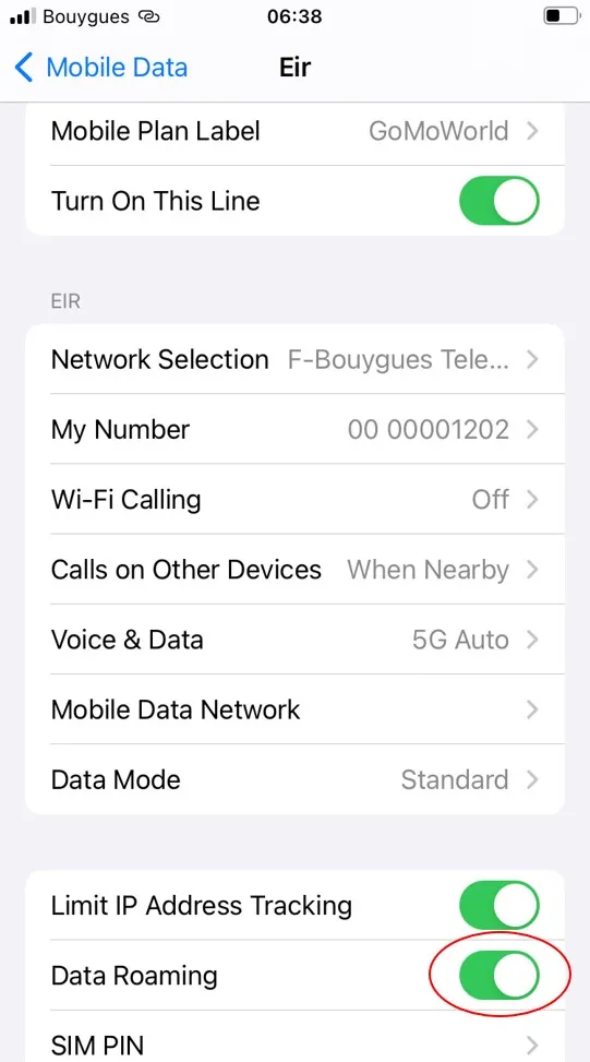 - Toggle ON Data Roaming at the bottom of the page to enable data use abroad with GoMoWorld.