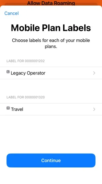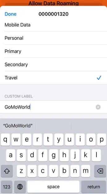 - You will be asked to choose a label (name) for your GoMoWorld eSIM to help you identify it easily. After choosing, tap Continue.
