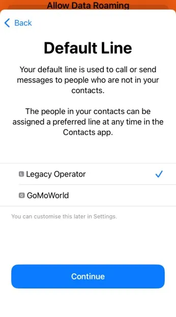 - Select your GoMoWorld eSIM from the list of lines.