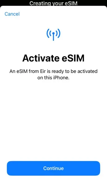 - Once ready, your device will prompt you to Activate eSIM. Tap Continue to proceed.