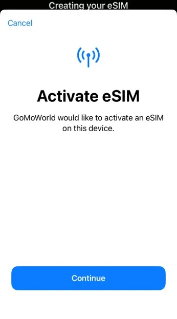 L’eSIM GoMoWorld sera préparée en arrière-plan (cela peut prendre jusqu’à 2 minutes)